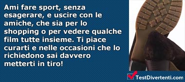 Ami fare sport, senza esagerare, e uscire con le amiche, che sia per lo shopping o per vedere qualche film tutte insieme. Ti piace curarti e nelle occasioni che lo richiedono sai davvero metterti in tiro!